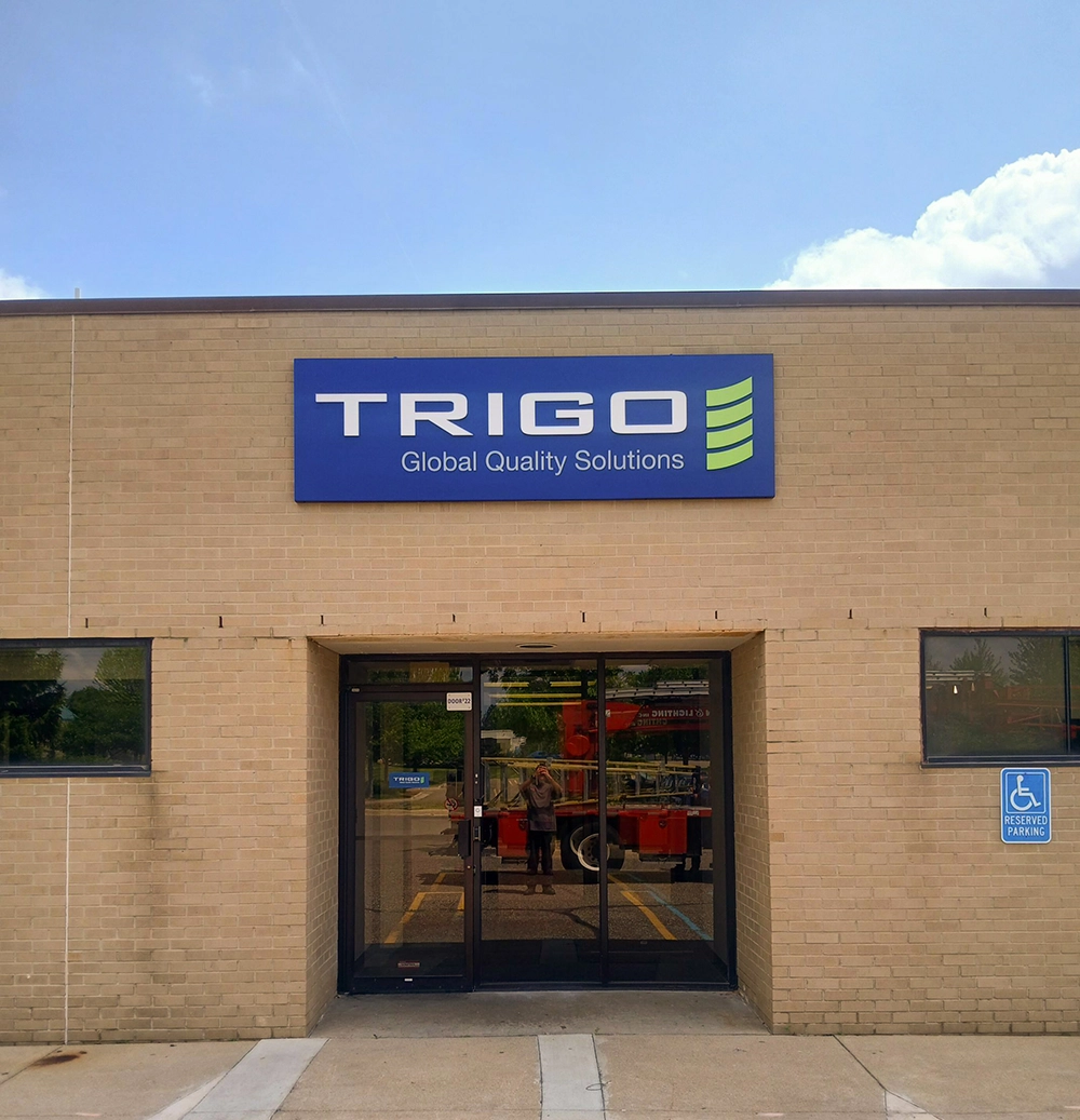 This large-format wall sign for Next Industries enhances the building’s professional look and provides strong brand presence.